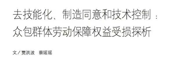 近日,北京航空航天大學人文社會科學學院(公共管理學院)賈洪波教授、博士研究生蔡瑤瑤發(fā)表《去技能化、制造同意和技術(shù)控制:眾包群體勞動保障權(quán)益受損探析》一文,被《人大復(fù)印報刊資料·勞動經(jīng)濟與勞動關(guān)系》so米體育-NBAso米直播第9期全文轉(zhuǎn)載